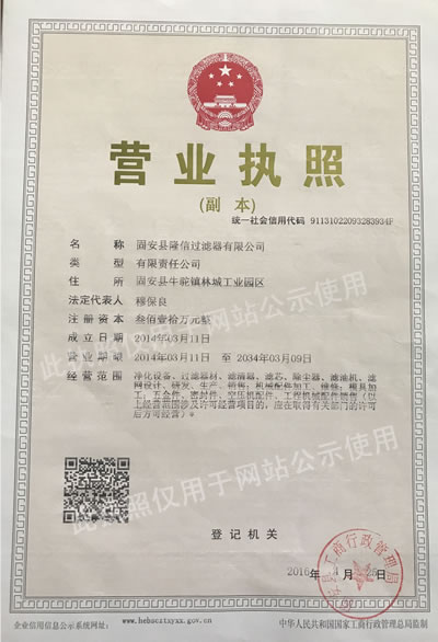 隆信過濾器有限公司是一家生產(chǎn)加工的公司,擁有完整、科學(xué)的質(zhì)量管理體系。隆信過濾器有限公司的誠信、實力和產(chǎn)品質(zhì)量獲得業(yè)界的認(rèn)可。歡迎各界的朋友指導(dǎo)和業(yè)務(wù)洽談!